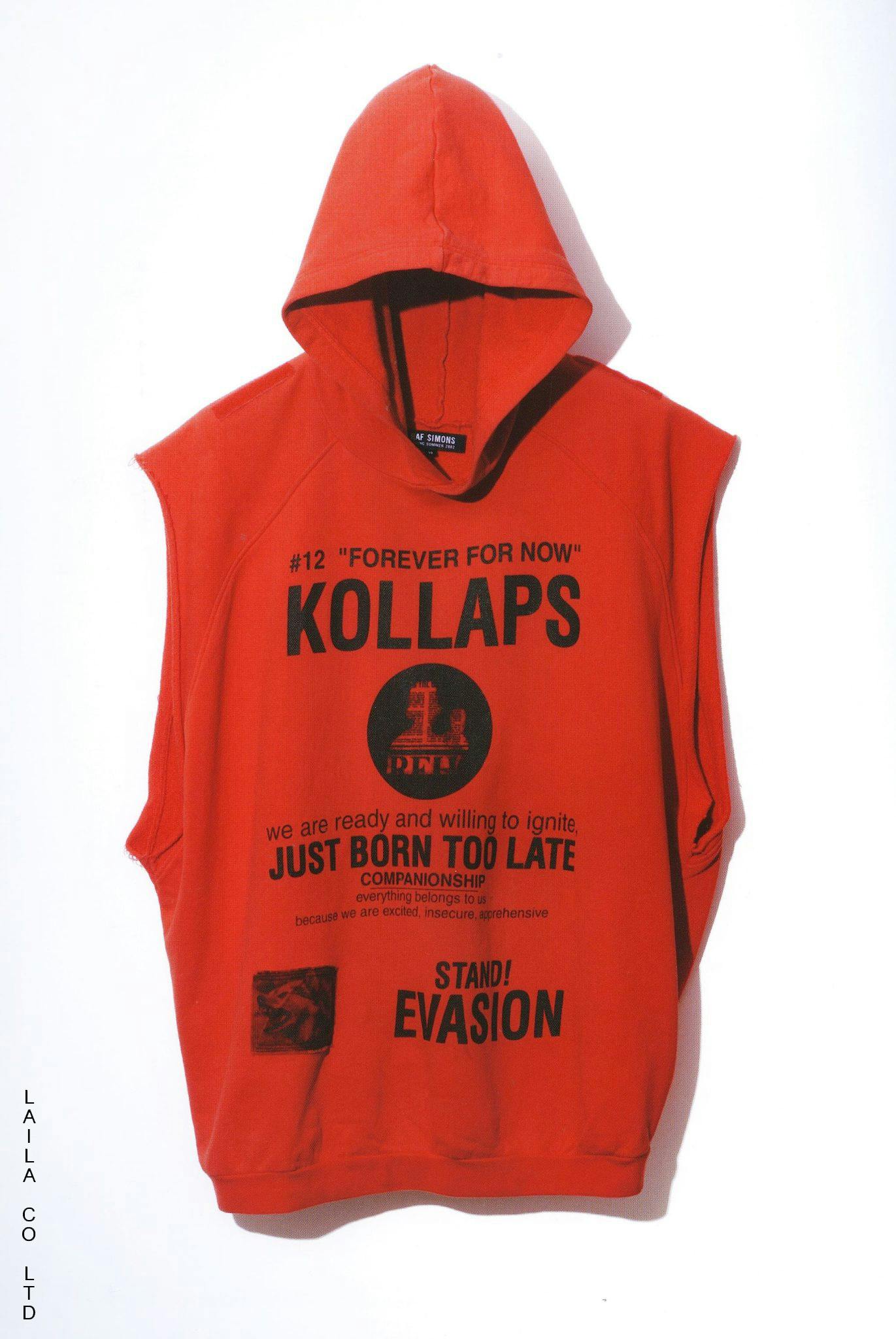 Sharing a deep love for youth culture, strong messages and radical gestures, Peter provided Raf’s collections with visuals, collages, texts and poetry high on counterculture references, pop culture iconography and quotes from underground literature and cinema.
