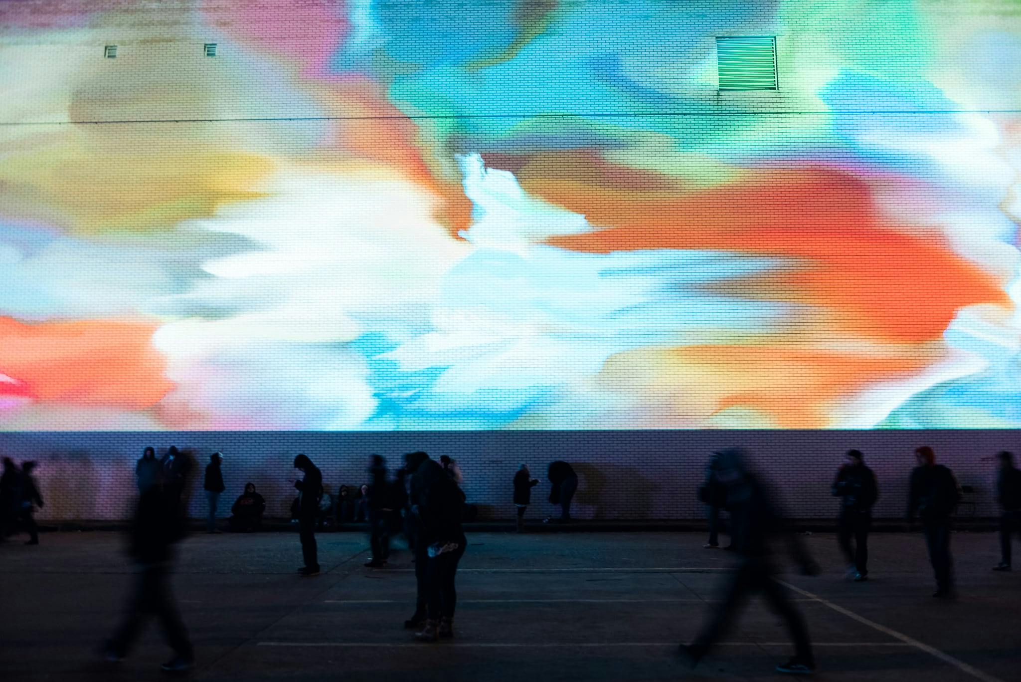 “Stream”, a generative work created using Touch Designer shown during Day for Night in Houston, TX, December 17-18, 2016.